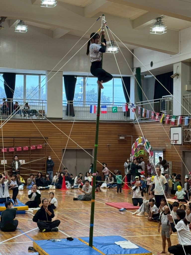 会場となる、くすのき公園の準備をしました! まずはお掃除。みんなで気持ちよく使うために大事な仕事ですね♪ 掃除の後はテント建て。縁日の目印に1基建てました!! 女の先生だってみんな力持ち! そのあとは …
