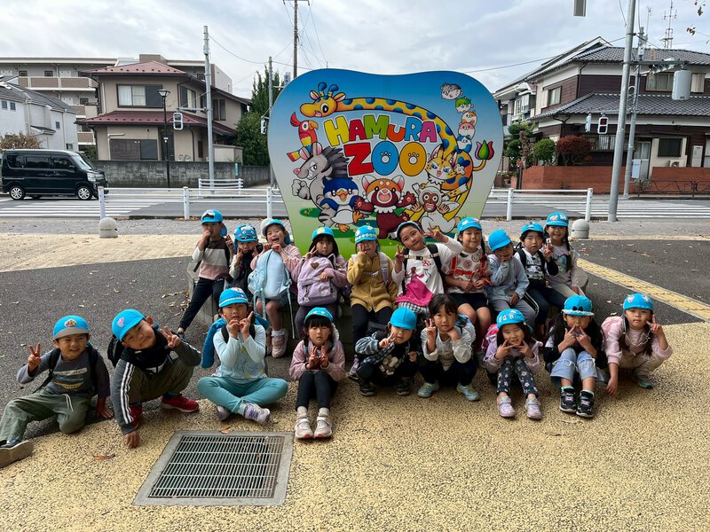 武蔵野公園や富士見公園などたくさんの公園で遊んでずっと歩いて羽村動物園まで行きました。とっても体力のあるぶどう組。