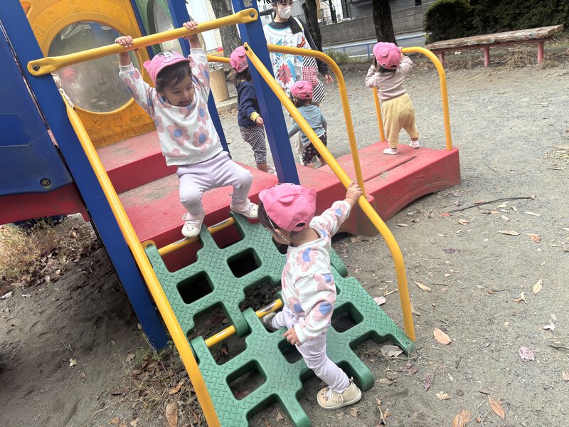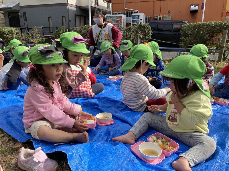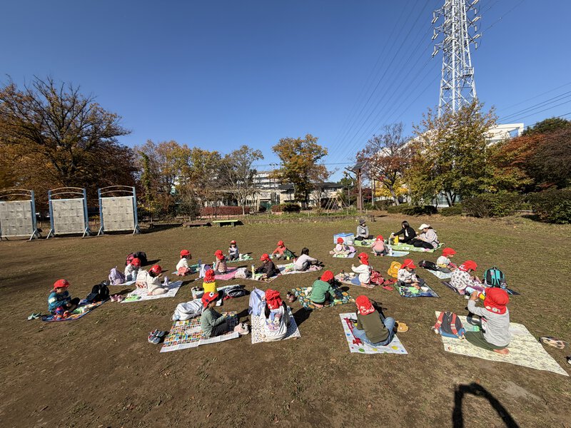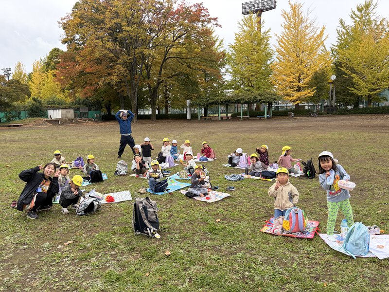 武蔵野公園の遊べる場所全部で遊びました!いつもは入らないグラウンドも入って、最後はみんなでよーいドン!をしました。お昼ご飯は、なんと…お弁当!お弁当は嬉しいね☺️