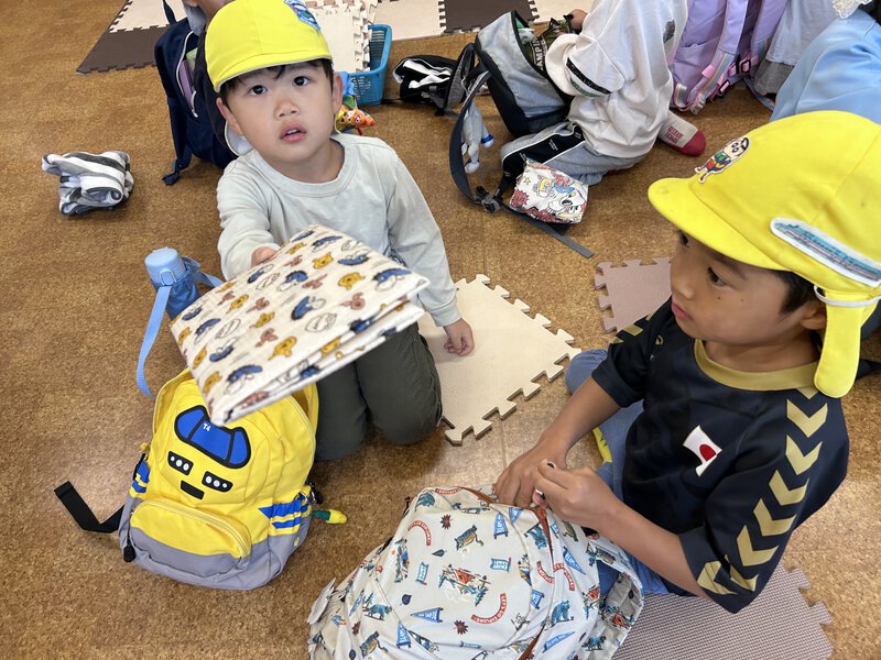 ばなな組も武蔵野公園へ!朝の会でリュックに入れるものを確認して出発!レジャーシート持ったよー!