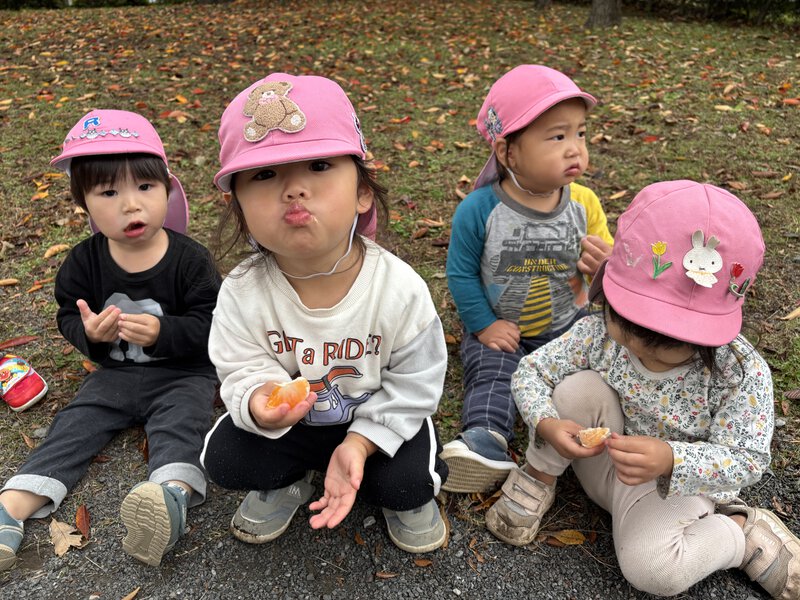 さくらんぼ組は、畑へ行って、みかんを収穫!みんなで分けて食べました。