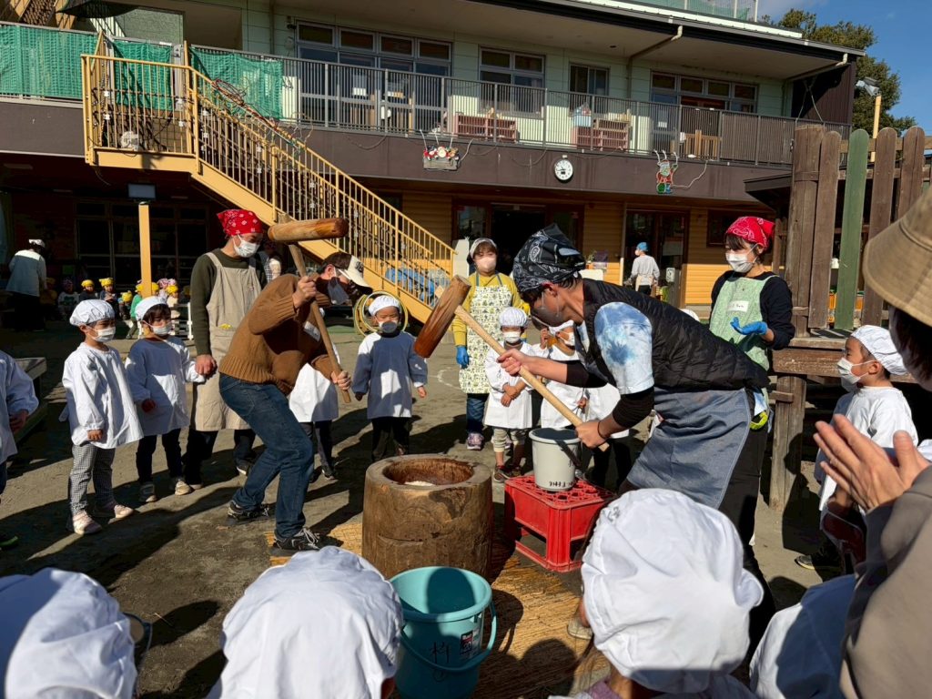 子どもたちも上手につきました!パパもママもおもちをついてくれました!園長先生、原田先生、パパと3人で素晴らしいおもちつきを見せてくれました!👏🏻