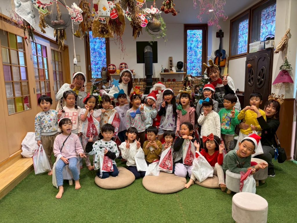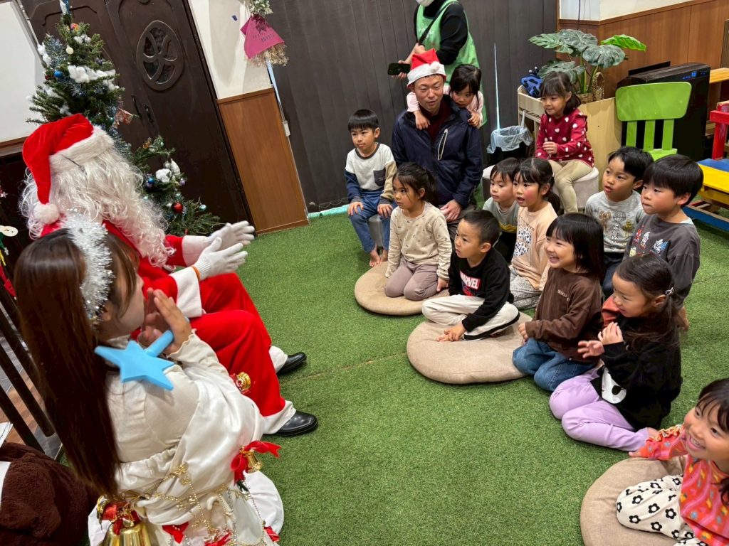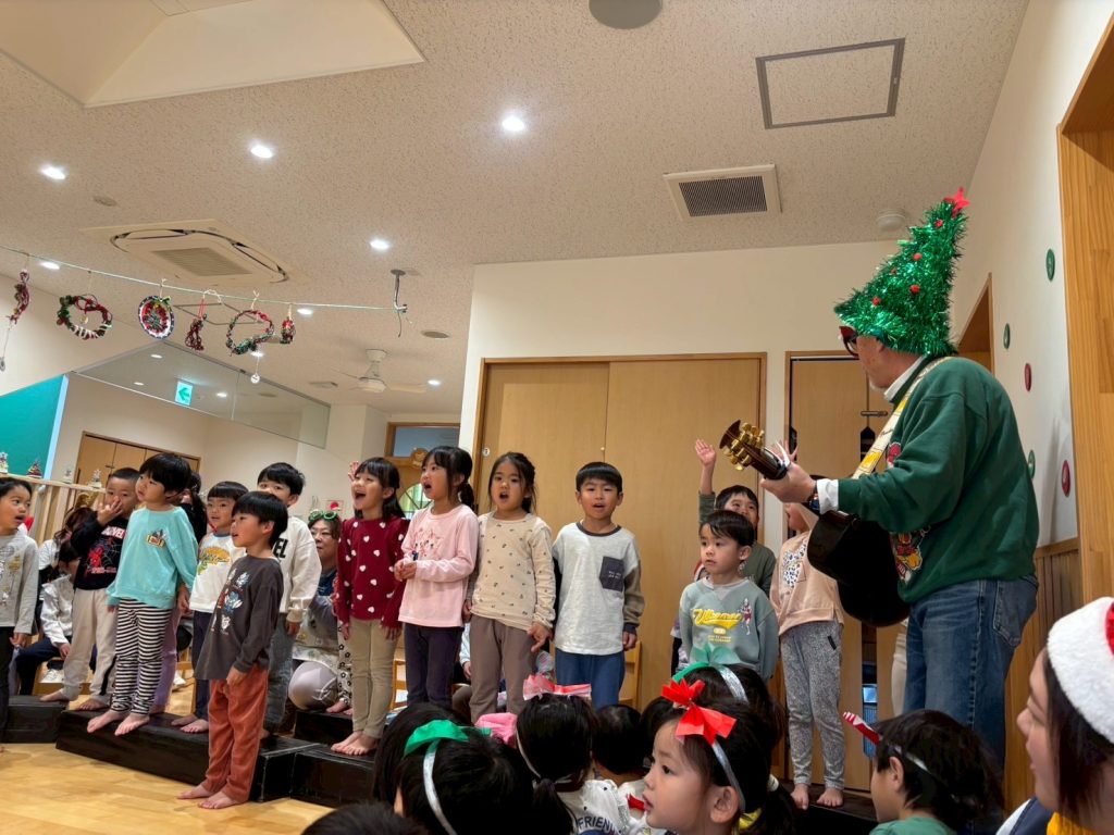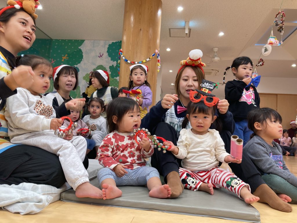 みんなで「ジングルベル」や「あわてんぼうのサンタクロース」歌を歌ったり、クラスでクリスマスにちなんだ手遊びやダンスなどを披露しました!🎶
