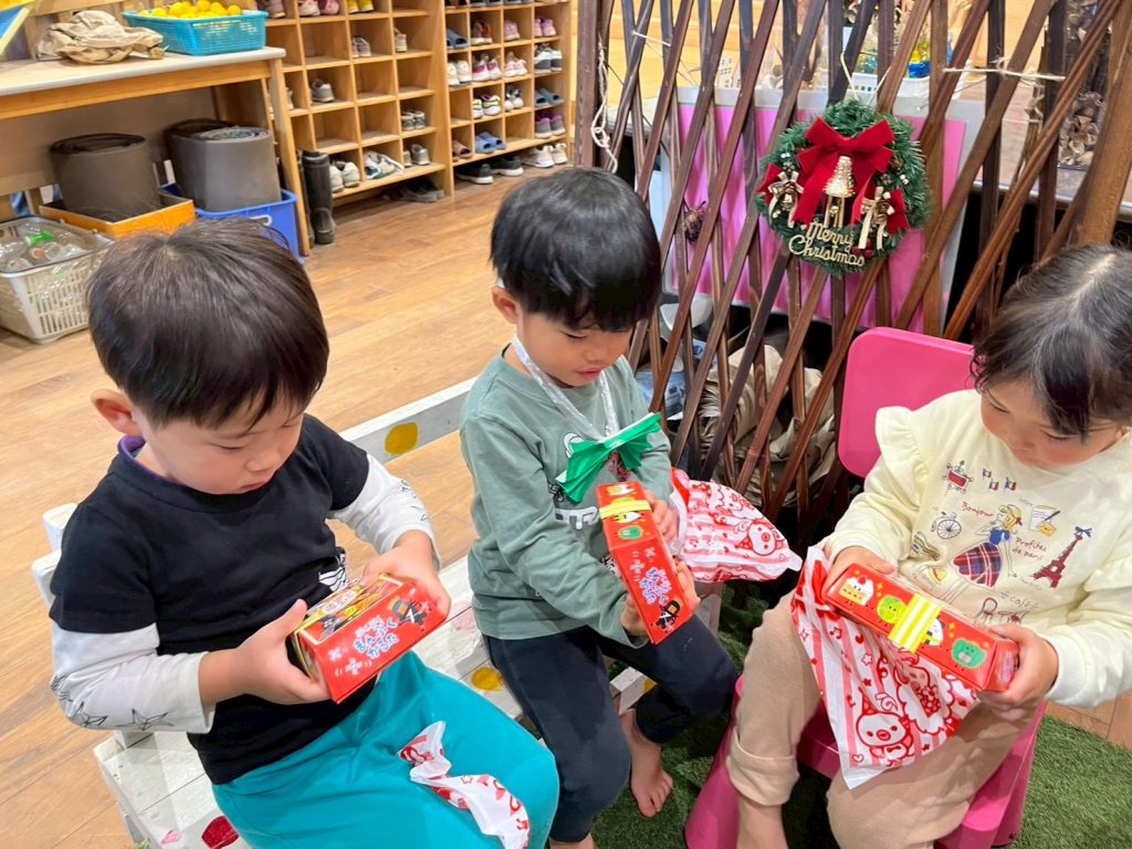 みんながサンタさんのお話を聞いていると、なんと!サンタさんプレゼントも持ってきてくれました!!🎁
